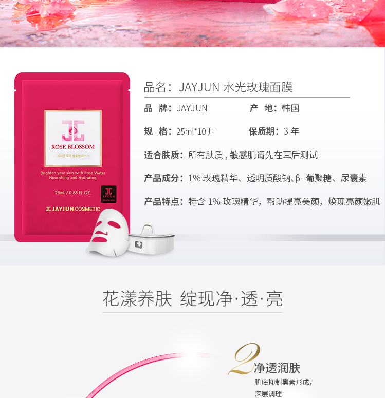 JAYJUN 水光玫瑰面膜25ml*10片盒装